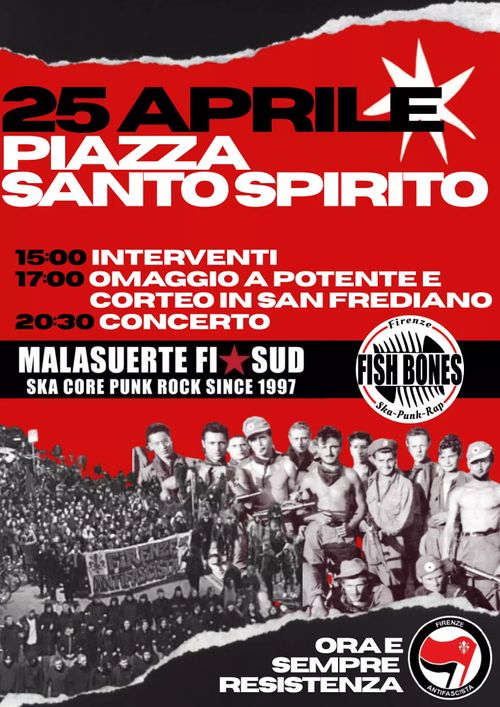 Ore 17.00 Intervento di Firenze Antifascista e Anpi Oltrarno, e a seguire deposizione della corona al monumento a Potente e partenza del corteo Antifascista.