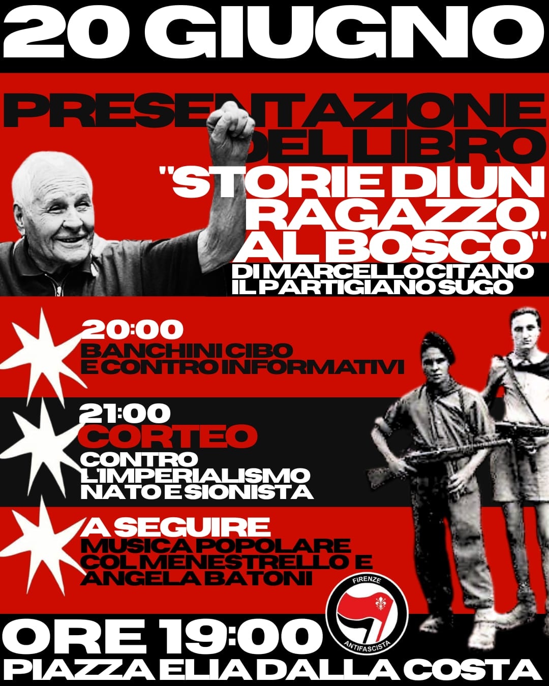 Alle ore 19.00, presentazione del libro “Storie di un ragazzo al bosco”, scritto sulle memorie del partigiano con la collaborazione della Sezione Oltrarno dell’ANPI.