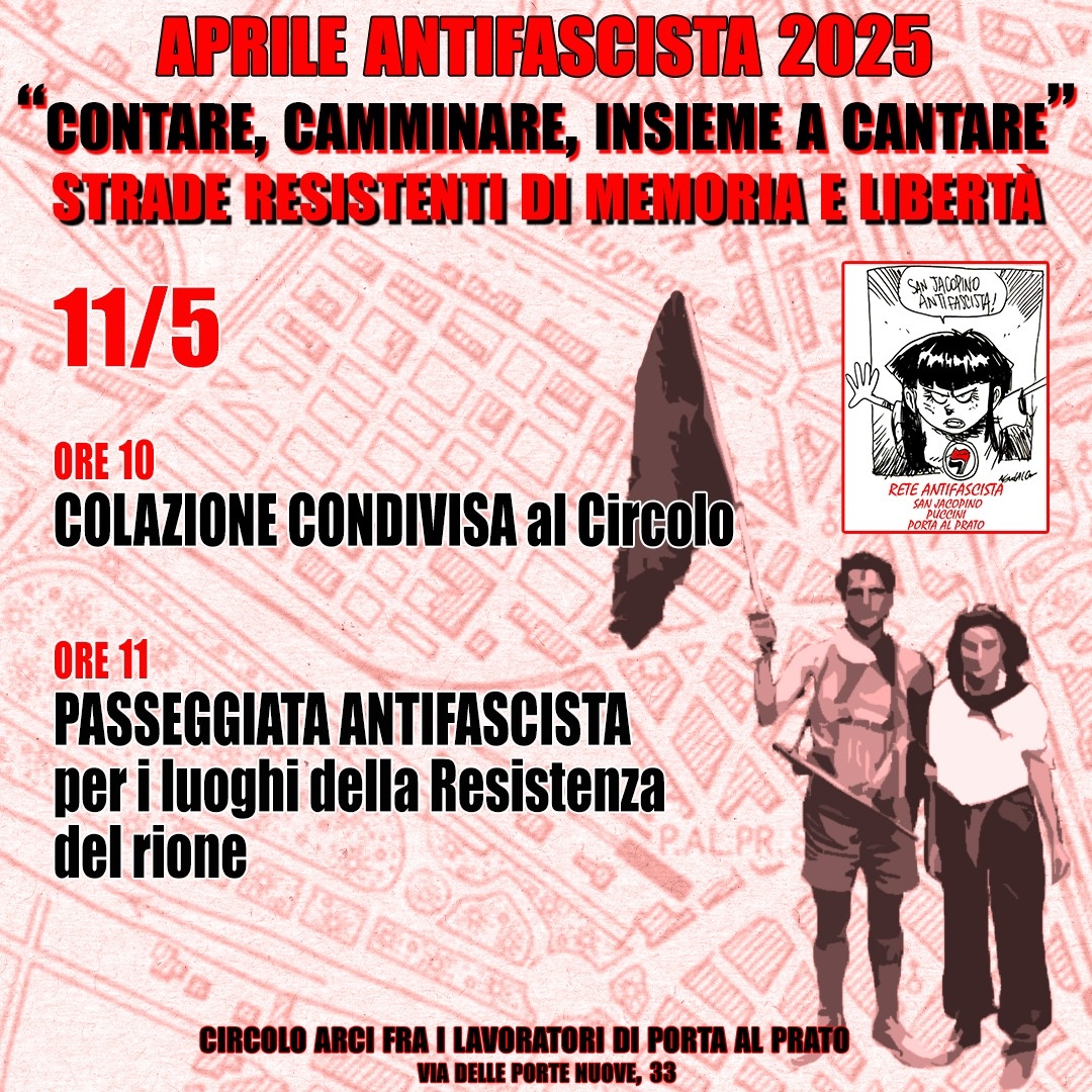 APRILE ANTIFASCISTA 2025 - Colazione condivisa e passeggiata antifascista per i luoghi della Resistenza del rione