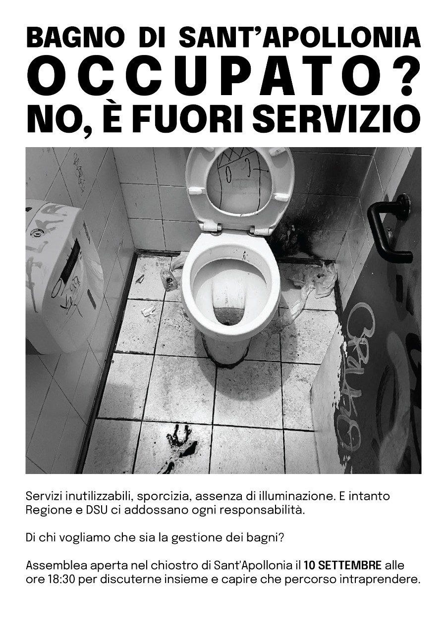 L'ARDSU avrebbe tentato di formalmente incaricare la nostra occupazione della gestione dei bagni della Mensa di Sant'Apollonia, lasciando questa mensa sprovvista dei servizi igenici.