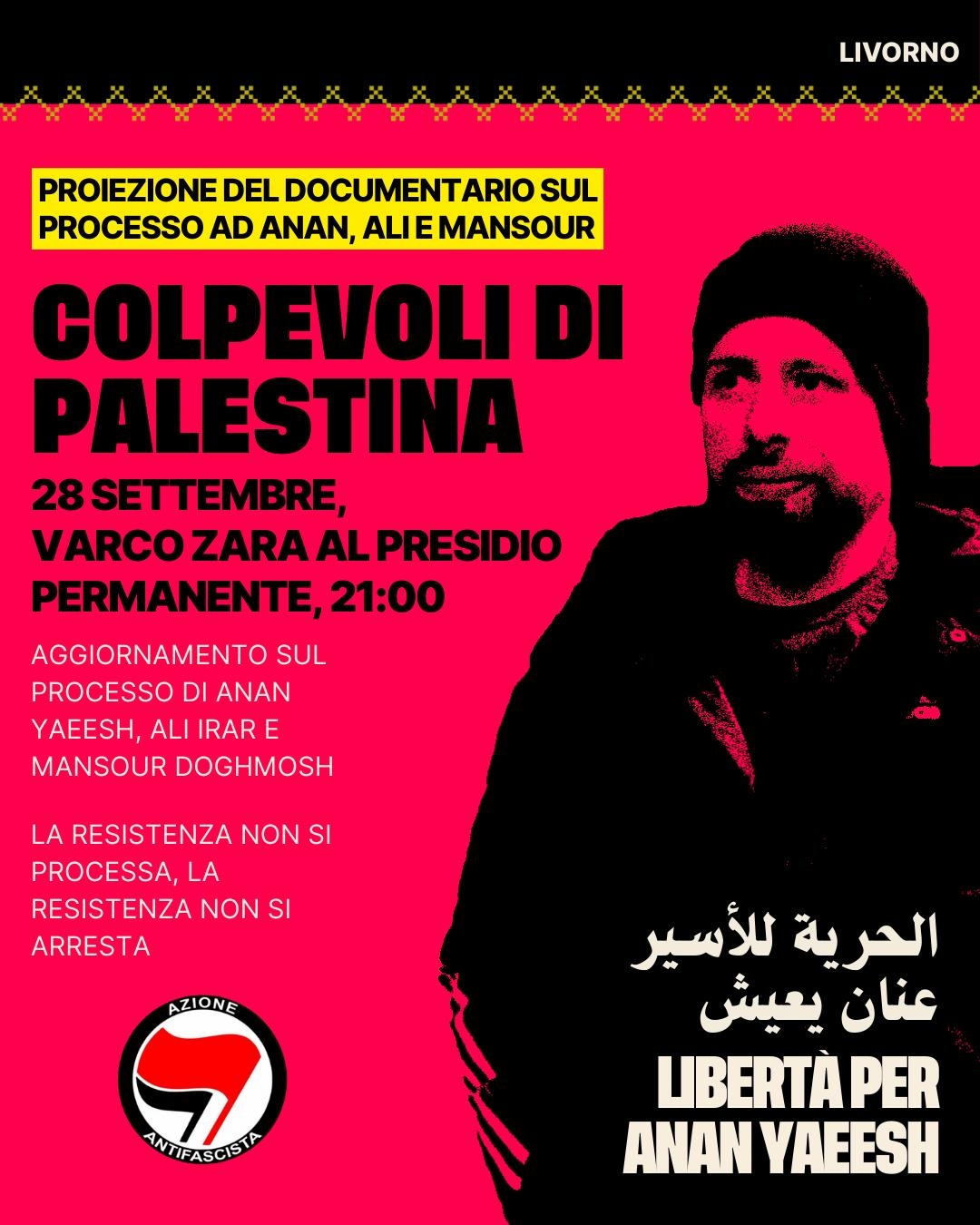 Proiezione del documentario Colpevoli di Palestina sulla vicenda giudiziaria di Anan, Ali e Mansour