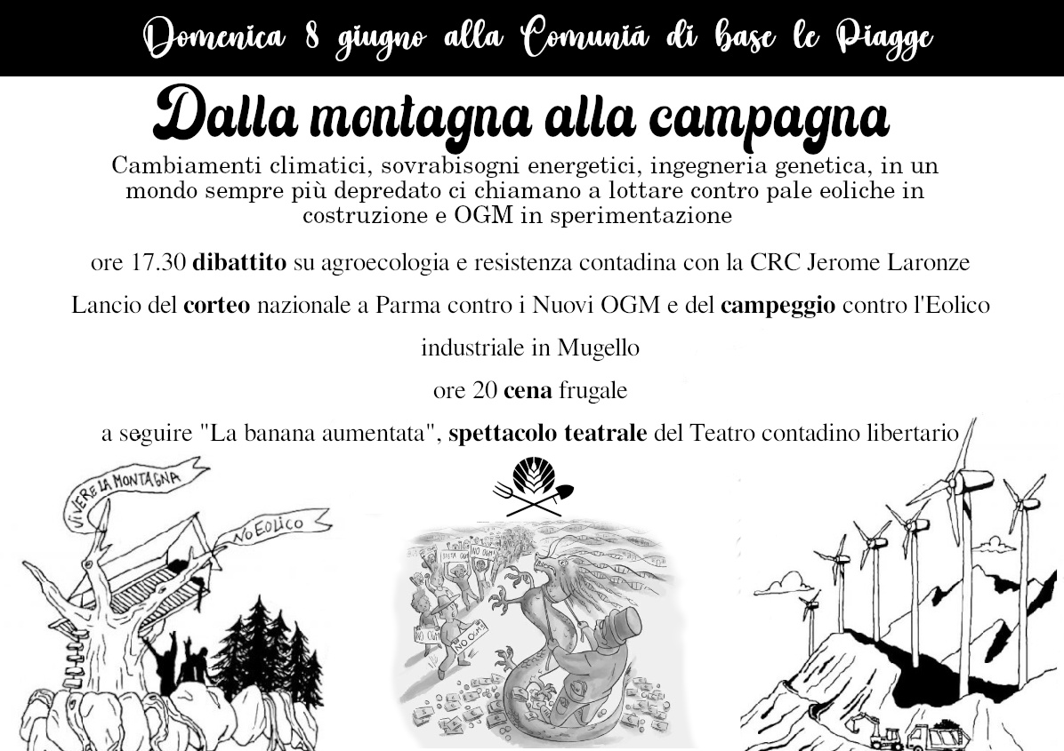 Dalla montagna alla campagna, lancio del corteo contro i nuovi OGM e del campeggio contro l'eolico industriale
