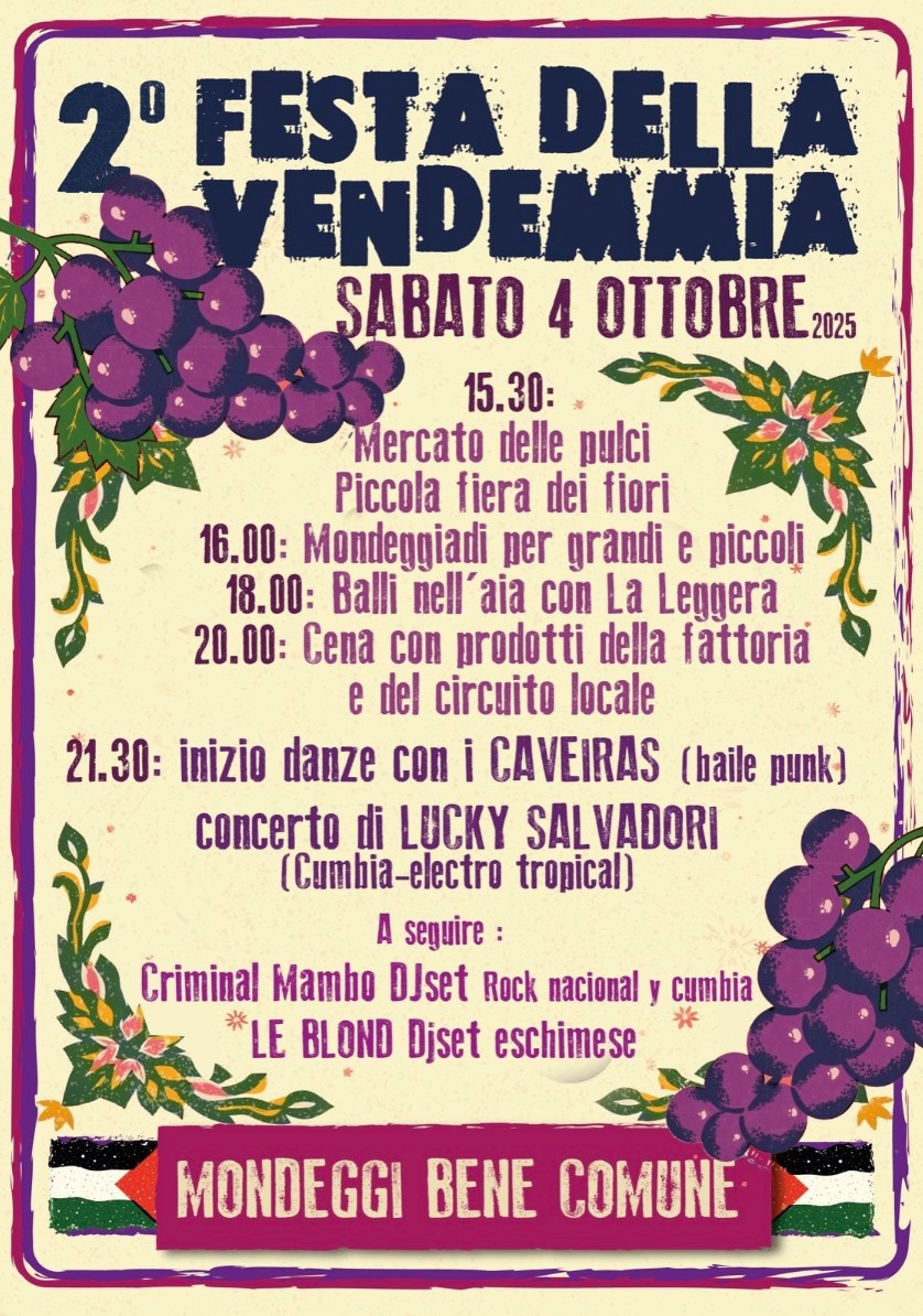 Siamo giunti alla seconda edizione della festa della vendemmia, iniziativa organizzata insieme al gruppo MOVA (MOndeggi Vigna Autogestita). Il MOVA rappresenta un'interessante progetto di custodia popolare di 5 ha di vigna, gestita e curata collettivamente da decine e decine di persone.