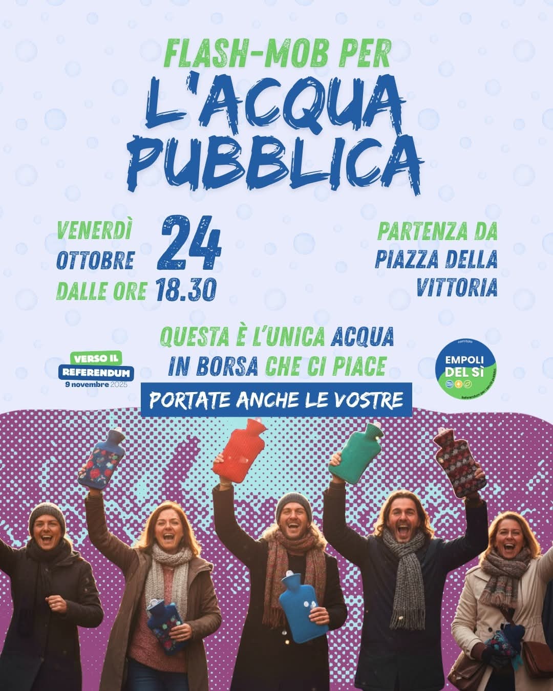 📢 Partecipiamo numerosi e portiamo tutti una BORSA DELL'ACQUA CALDA (l’unica acqua in borsa che ci piace!) così da renderla il nostro simbolo di riconoscimento, e tanti cartelli 🪧.