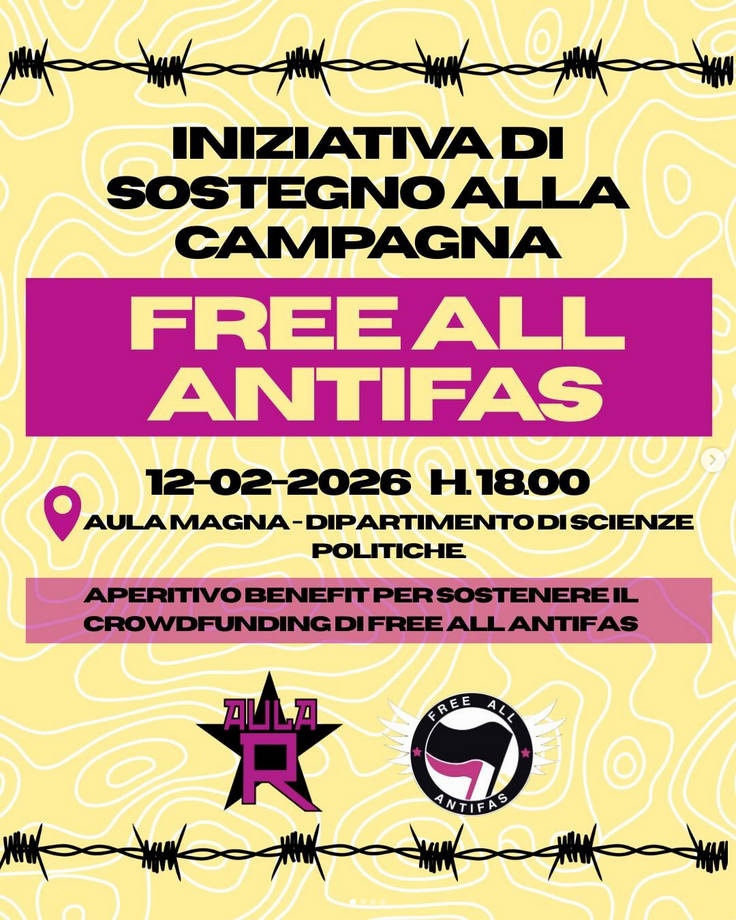 Di fronte ad una repressione sempre più violenta e capillare dei movimenti antifascisti sono nate numerose iniziative in solidarietà allx imputatx in tutta Europa, coordinate nella 𝒄𝒂𝒎𝒑𝒂𝒈𝒏𝒂 𝒊𝒏𝒕𝒆𝒓𝒏𝒂𝒛𝒊𝒐𝒏𝒂𝒍𝒆 𝑭𝒓𝒆𝒆 𝑨𝒍𝒍 𝑨𝒏𝒕𝒊𝒇𝒂𝒔. In una fase storica in cui le “democrazie” neoliberali europee stanno rivelando il loro lato più violento e appoggiando più o meno esplicitamente le organizzazioni neonaziste, riteniamo fondamentale sostenere la libertà di lottare in ogni forma contro il fascismo e sostenere questa campagna, contribuendo alle spese che stanno affrontando le persone coinvolte nei fatti di Budapest.