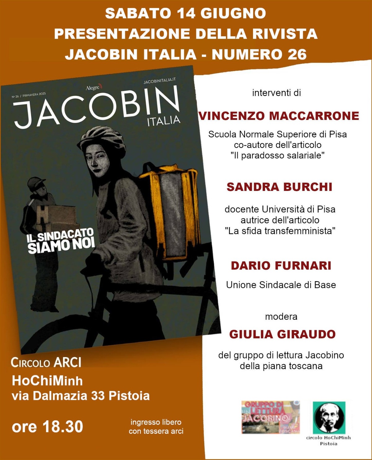 📌 SABATO 14 giugno alle 18.30 al circolo HoChiMinh