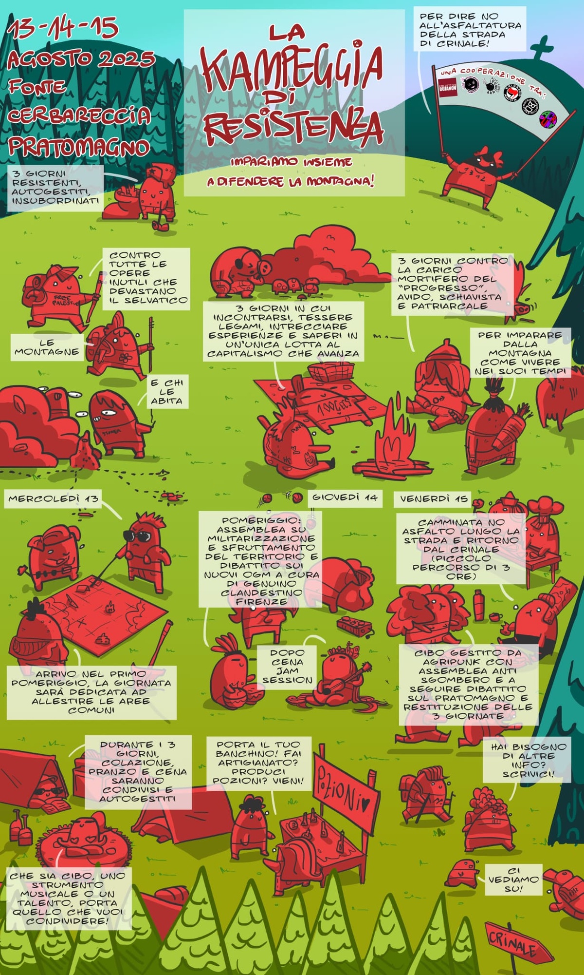 🌿 3 giorni resistenti, autogestiti, insubordinati per difendere la montagna! 3 giorni per imparare insieme, intrecciare esperienze radicali in un'unica lotta al capitalismo che avanza
