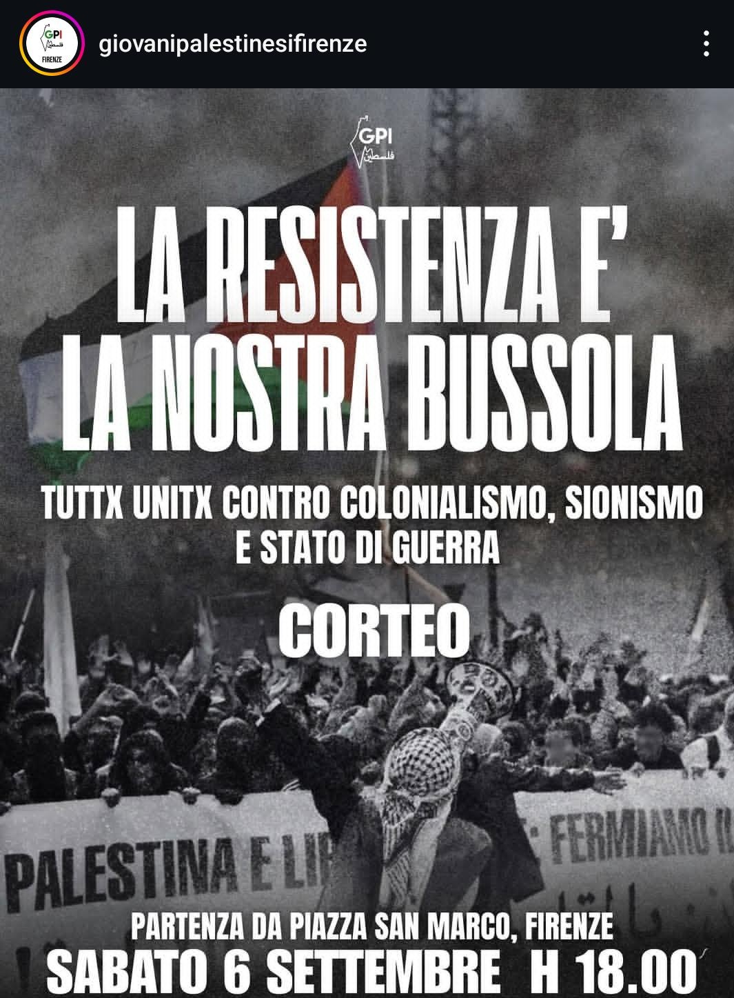 Tanto più oggi, alla luce dell’intensificarsi dei dispositivi di repressione e controllo rivolti contro chiunque si impegni a contrastare tale progetto o incarni un ideale di giustizia e resistenza — primo fra tutti il fratello Anan Yaeesh, combattente della resistenza palestinese detenuto ingiustamente dallo Stato italiano su pressione di “Israele” — diventa imprescindibile unirci, organizzarci e agire con un unico scopo: combattere un nemico comune.