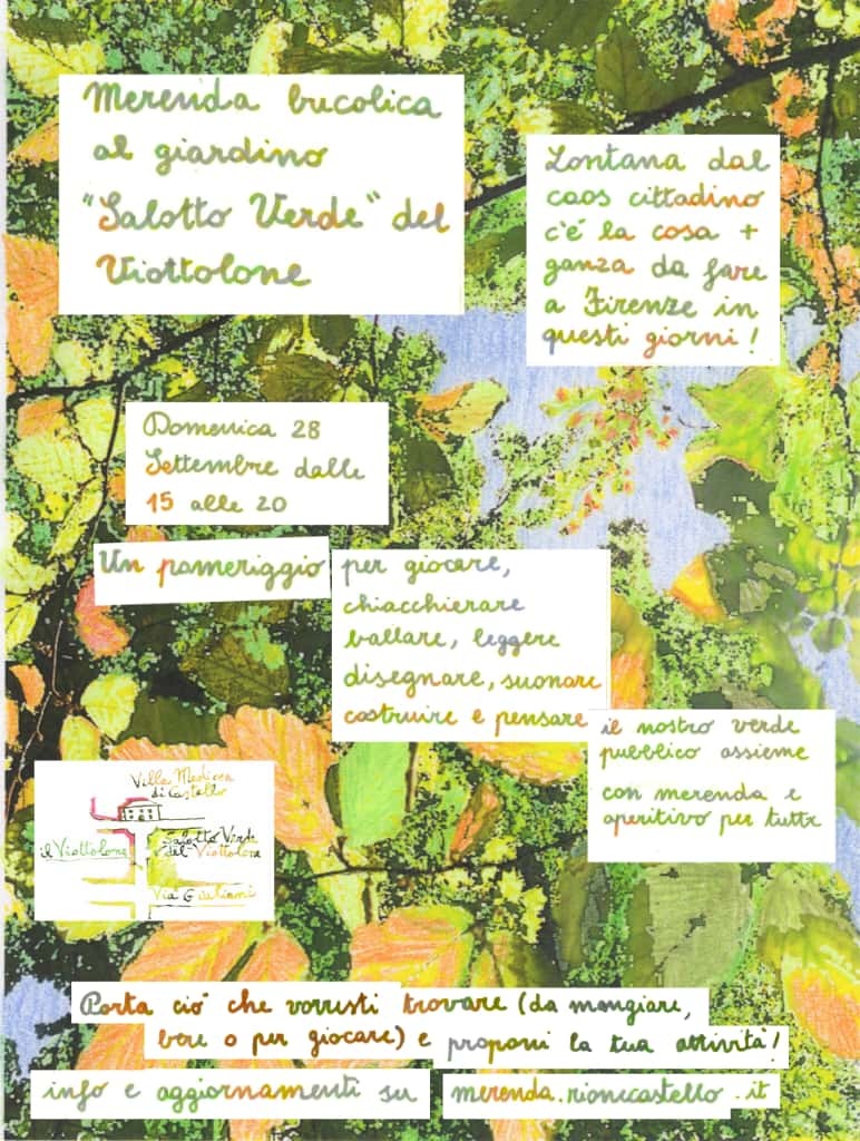 Questa *Domenica dalle 15 alle 20* al nostro *"Salotto Verde"* passeremo un pomeriggio assieme con musica, danza, teatro, giardinaggio, merende e aperitivi!