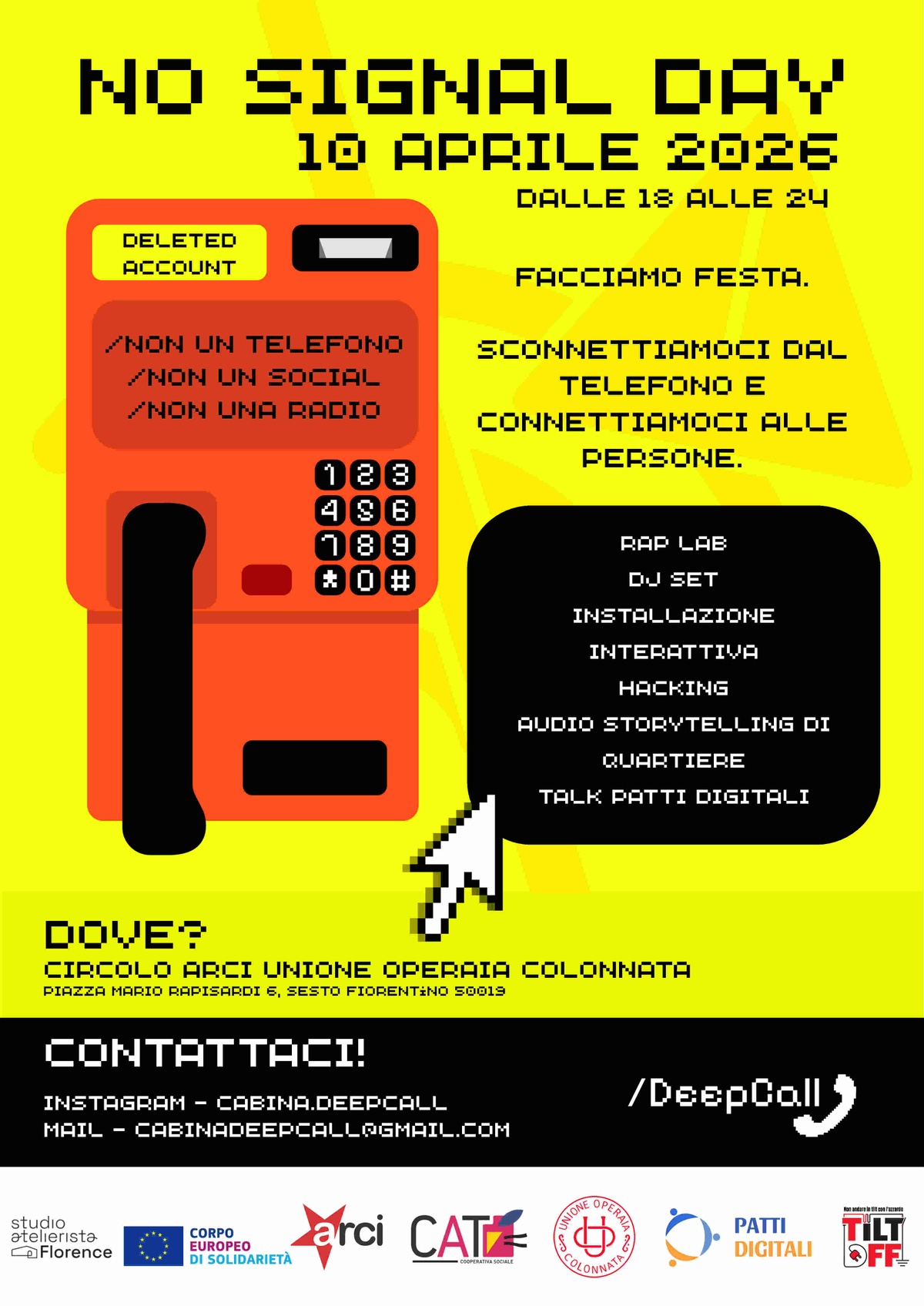 Salve ecco un evento legato all’installazione itinerante telefonica Deep call e al coordinamento Patti Digitali toscani, accorrete..