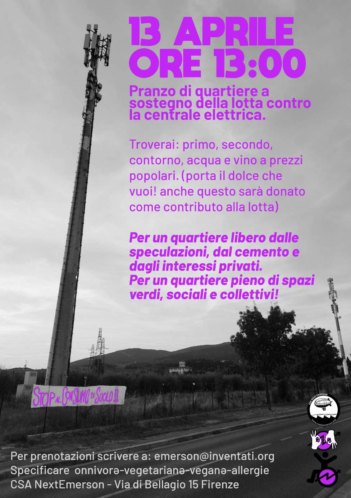 Domenica 13 Aprile pranzo di quartiere a sostegno della lotta contro la prevista installazione di una mega centrale elettrica al Sodo