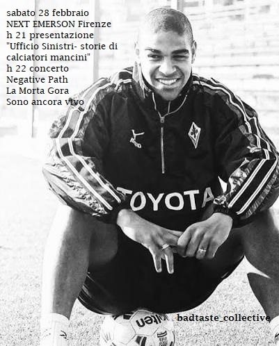 Presentazione del libro "Ufficio Sinistri - Storie di calciatori mancini" di Andrea Vecchio. Cronache inusuali ed aneddoti di calciatori mancini sia di piedi che di pensiero. L'autore presenterà il libro mediato da un membro del collettivo Bad Taste. La presentazione inizia alle 21 nell'immediato dopocena - cena consumabile sul posto, e precede il concerto che inizia alle 22.
