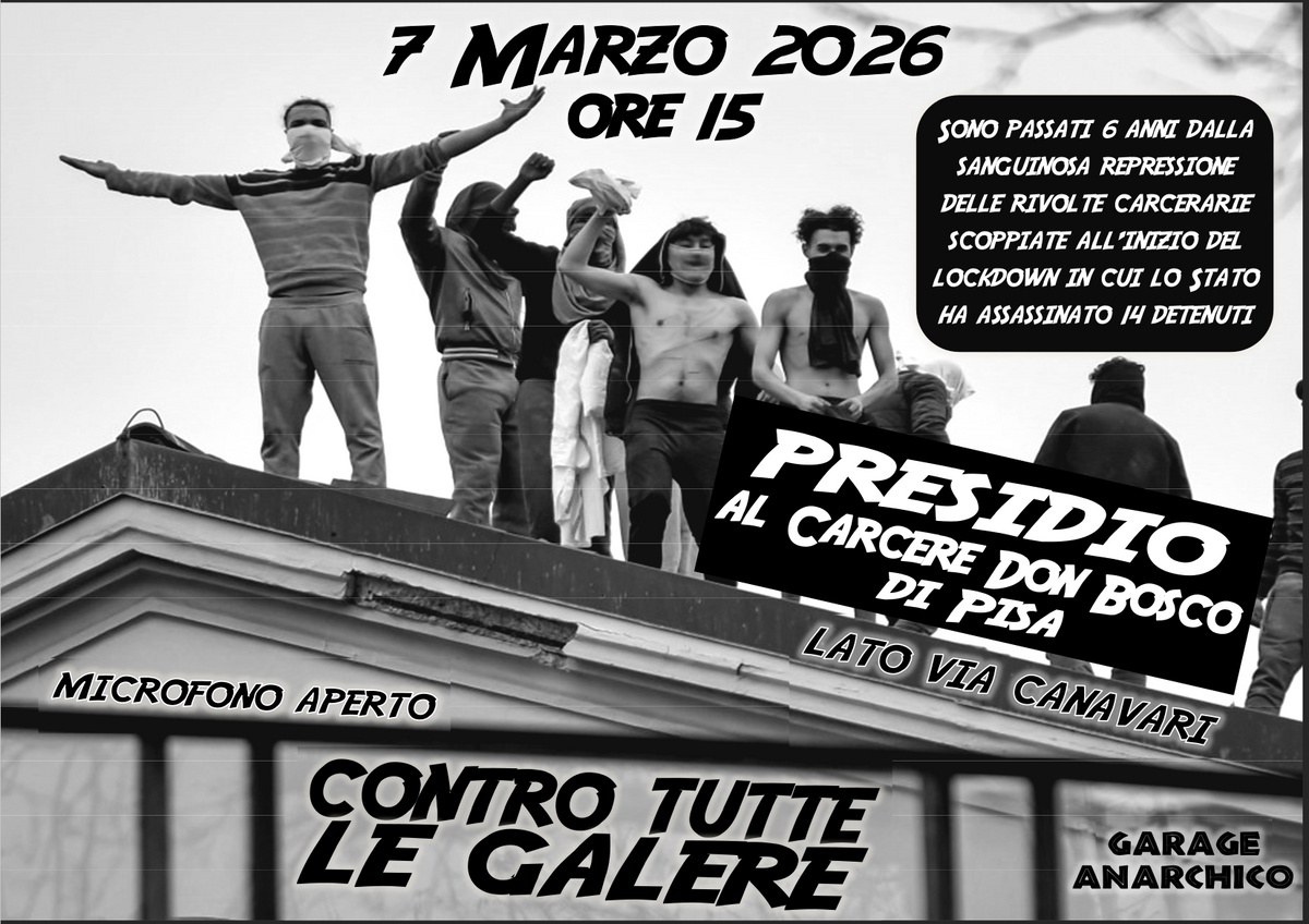 Sono passati 6 anni dalla sanguinosa repressione delle rivolte carcerarie scoppiate all'inizio del lockdown in cui lo Stato ha assassinato 14 detenuti.