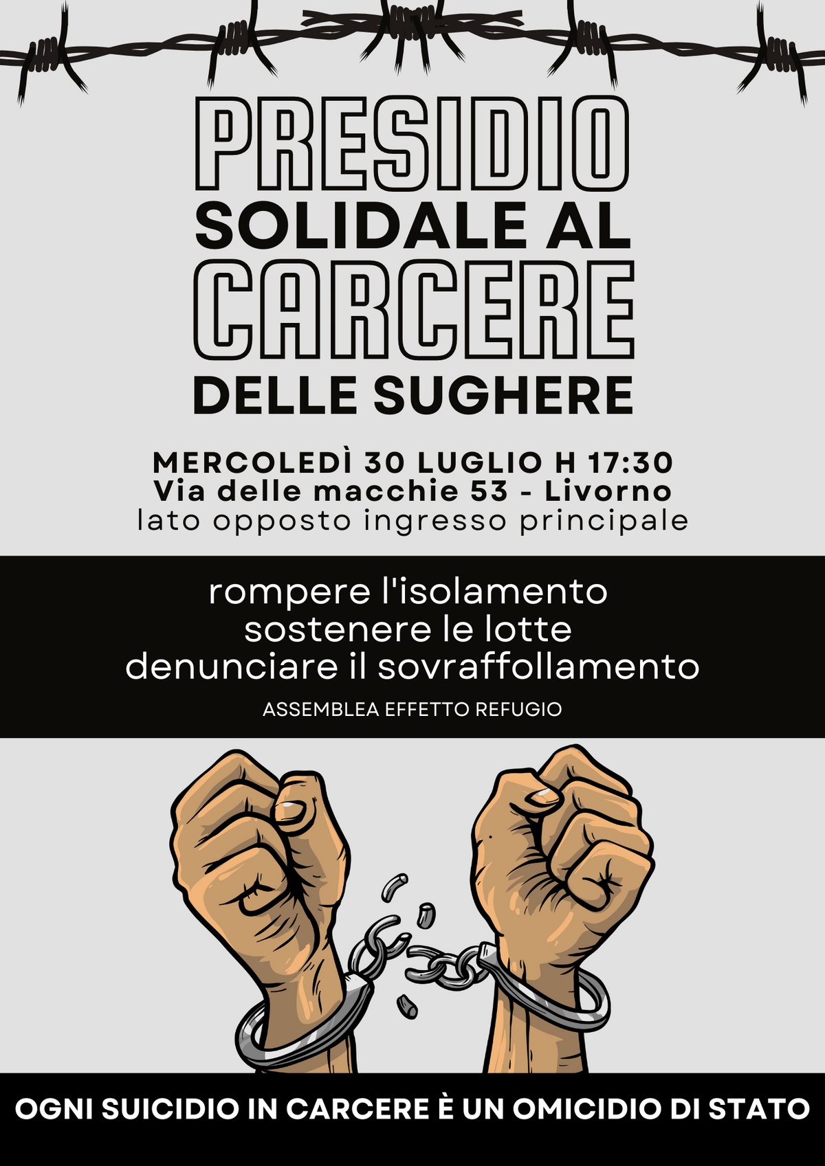 Presidio solidale in apertura di effetto refugio: contro il sovraffollamento e le condizioni invivibili in carcere, a fianco dei detenuti!