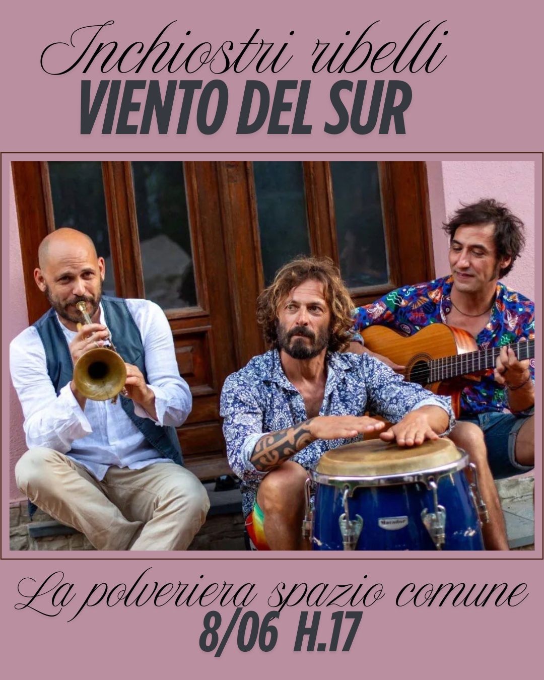 Viento del Sur è un trio composto da Martin Lemos alla chitarra e voce, Filippo Ceccarini alla tromba e Alessandro Conforti alle percussioni . Promuovono musica folkloristica come il Candombe Uruguaiano, il Son Cubano, Bossanova e Samba dal Brasile . Un viaggio tra America Latina e Mediterraneo.