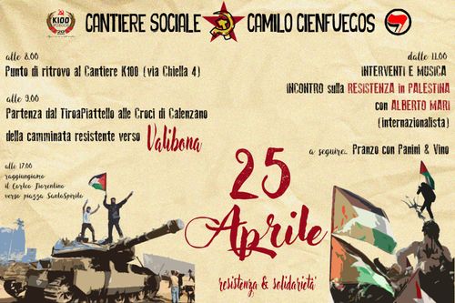 Dai monti ai piani, partigian* domenica 31 ago, 10:30-18:00 domenica 31 agosto 18:00 Cantiere Sociale Camilo Cienfuegos Via Chiella, 4, 50013 Campi Bisenzio FI antifascismoliberazionepartigianepartigianiresistenza
